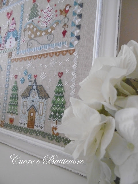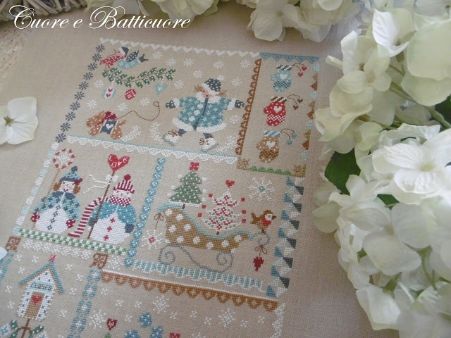 Benodigde draad : DMC : B5200-3828-747-367-3779-169-435-598-3363-347-434-597-989-498-433-3768