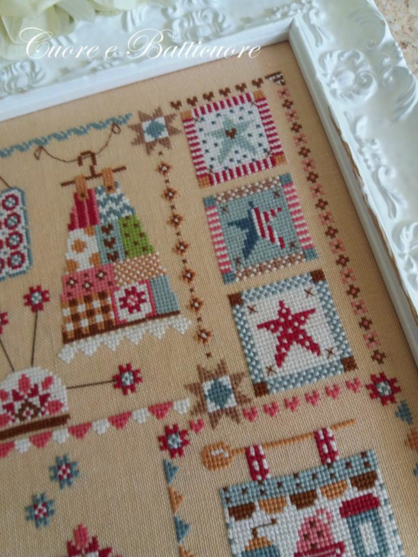 Voorgestelde draad : wit, 927, 926, 3768, 754, 962, 3731, 150, 469, 471, 3371, 801, 436, 433, 3863