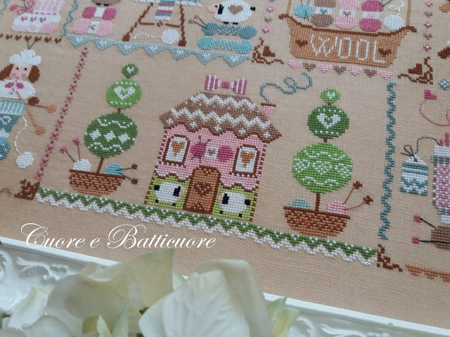 Voorgestelde kleuren : DMC : B5200, 598, 926, 927, 3716, 3688, 20, 3347, 704, 16, 310, 844, 436, 3863, 433