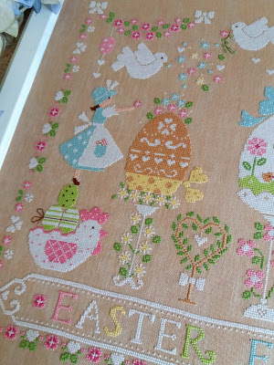 Voorgestelde kleuren : DMC : B5200, 604, 603, 3805, 3761, 727, 967, 16, 704, 433, 437